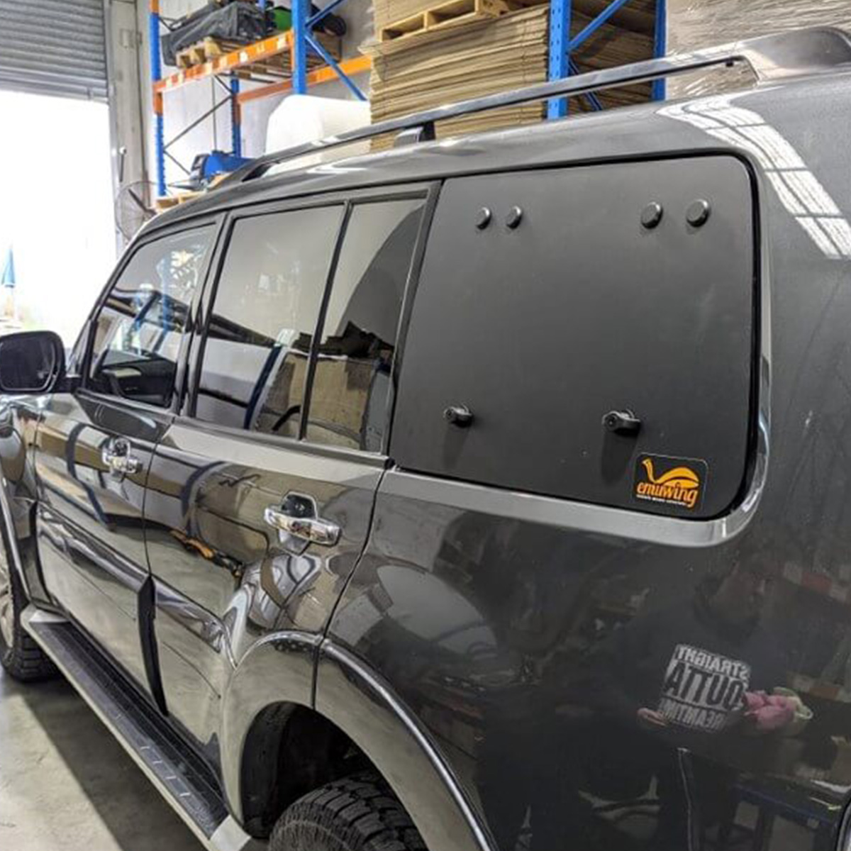 Maximize access and storage in your Mitsubishi Pajero Gen 4 with the Emuwing Gullwing Window Kit. Durable, dustproof, waterproof, and easy to install with no drilling required. Perfect for touring and off-road setups.