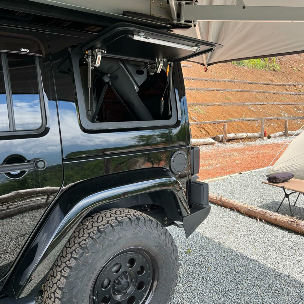 Emuwing provides the ultimate gullwing access solution for your Jeep Wrangler JK Unlimited, replacing the factory rear window to give full side access to your cargo area. Perfect for overlanding, camping setups, recovery gear, or custom storage solutions, this high-quality window ensures all your equipment is within easy reach.