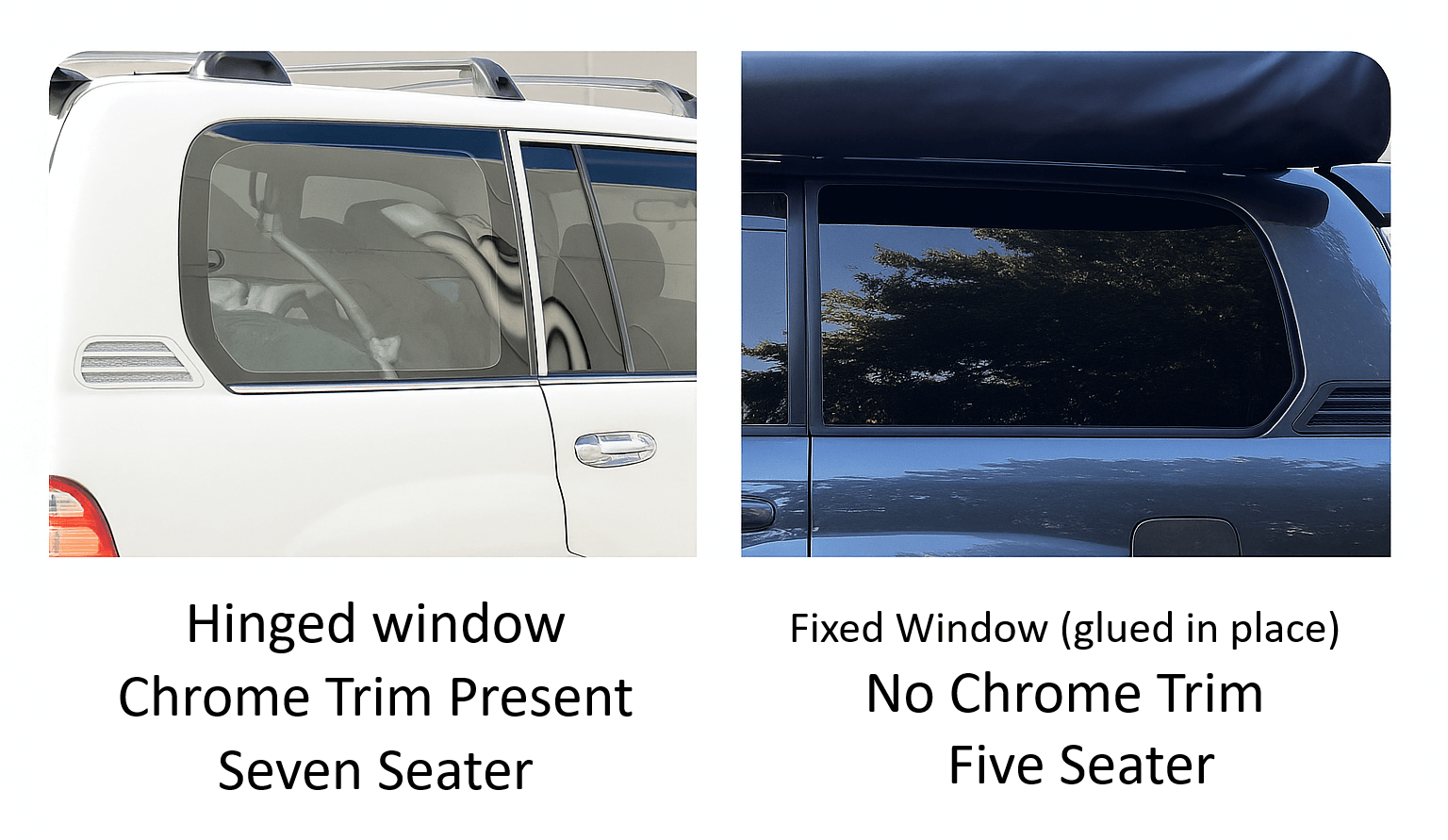 We now offer kits for both configurations — 5 seat (no chrome trim) and 7 seat (chrome trim present). Please refer to the photo on this page to identify your variant before ordering.