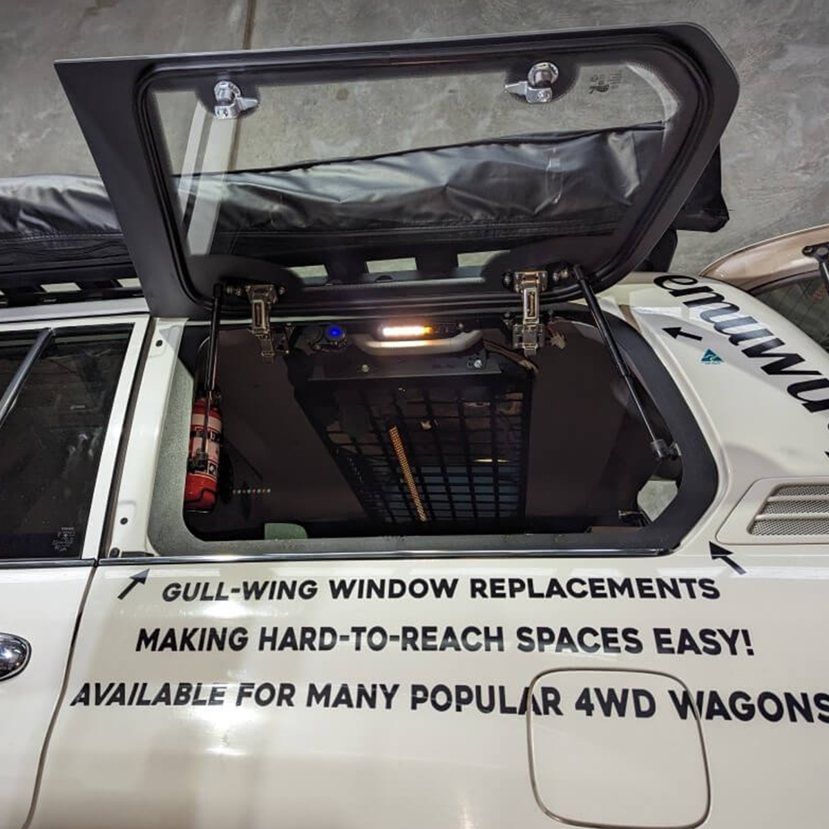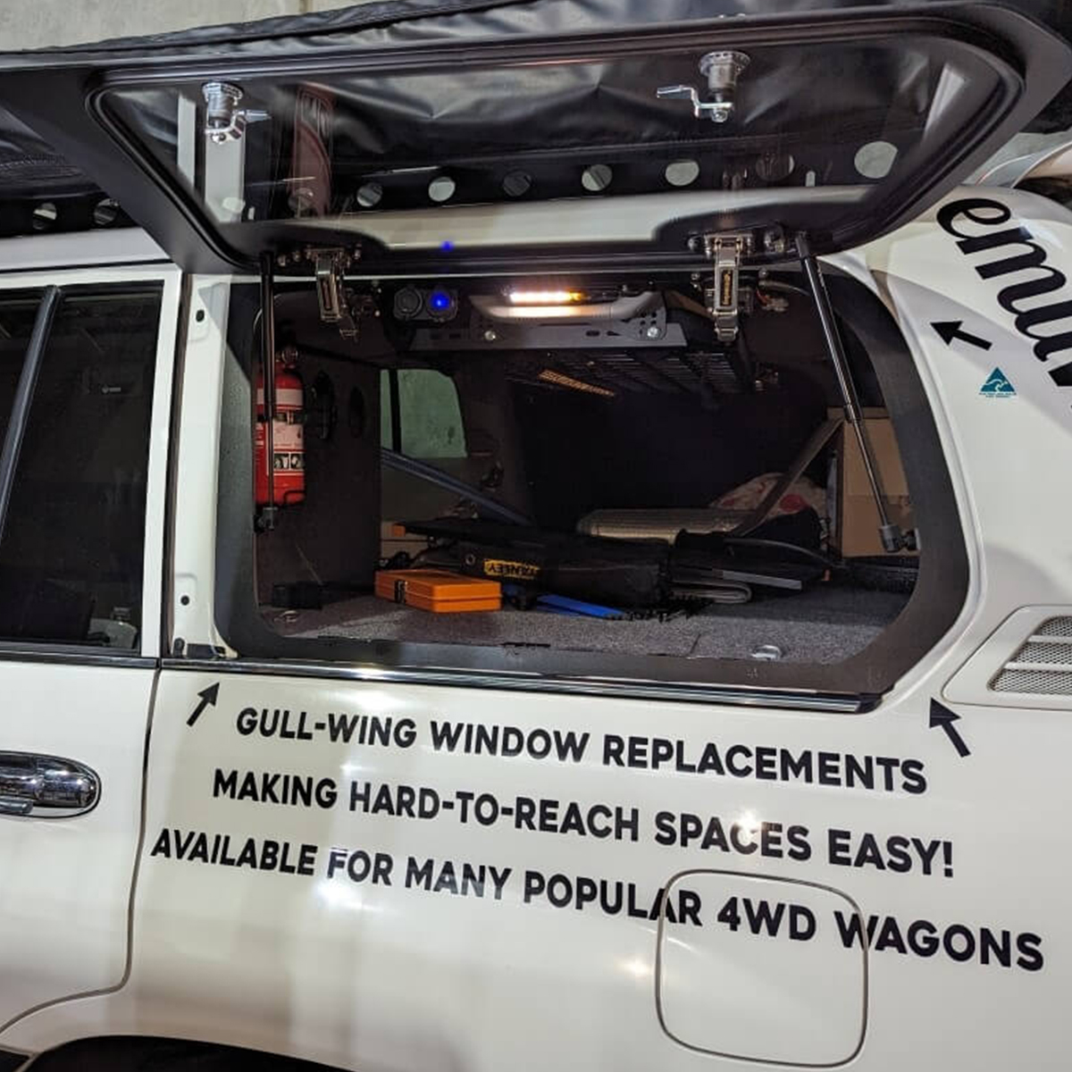 Enjoy effortless side access to your cargo area with the Emuwing Gullwing Window Kit, designed to make every adventure more convenient.