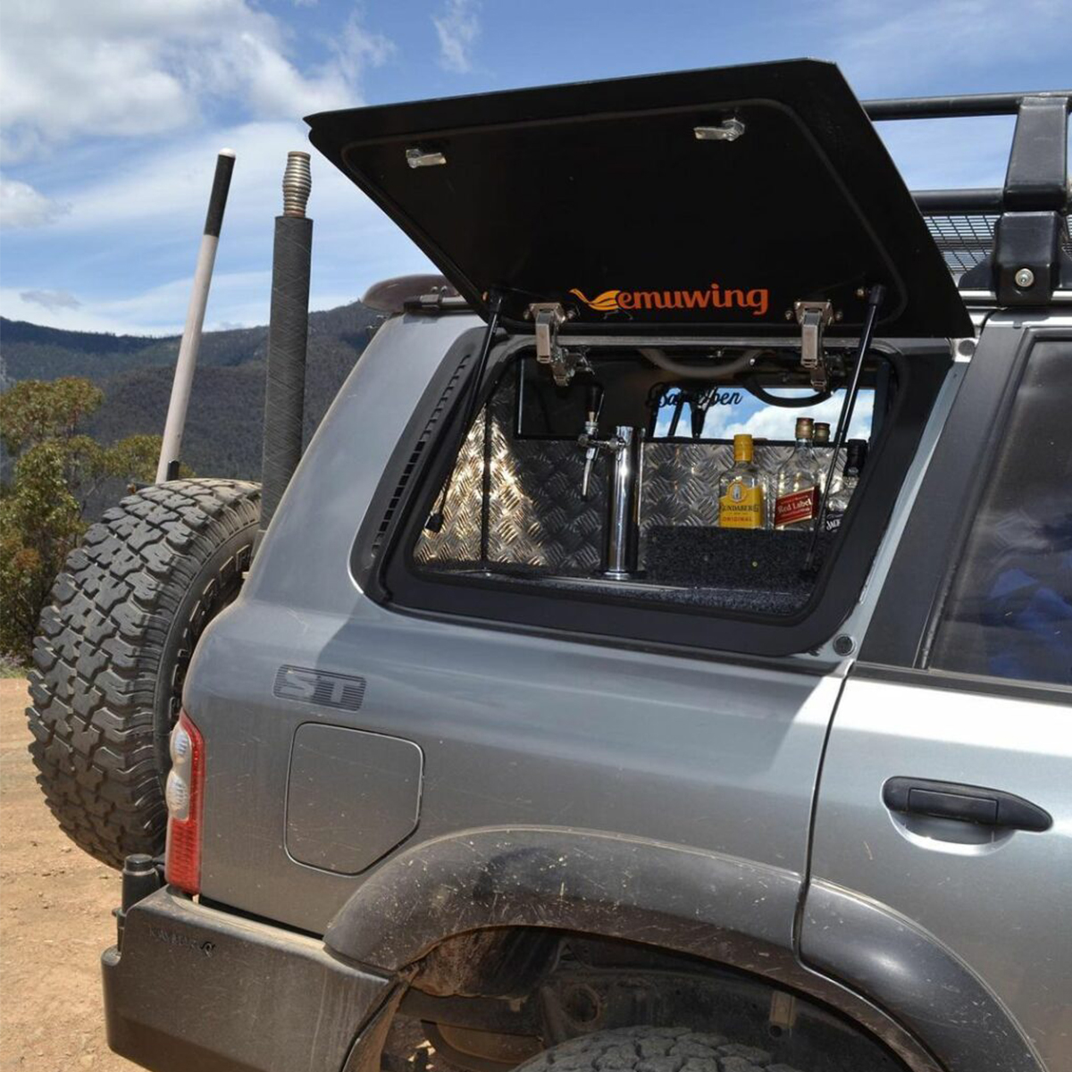 Transform your Nissan Patrol Y61 GU LWB (1997–2015) with the Emuwing Gullwing Window Kit — the ultimate DIY rear access upgrade for touring and off-road adventures. Designed and made in Australia, it replaces your factory glass with a durable, side-opening window for quick, easy access to your gear.