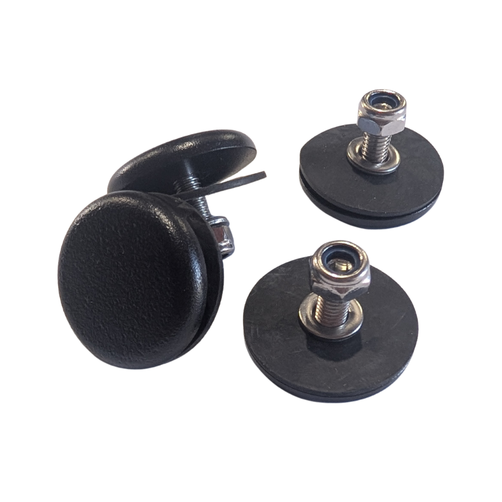 Each set is sold in pairs to suit one hinge, with one kit required per hinge. Kits include rubbers and M6 Nyloc nuts, giving you everything needed for a secure and professional installation.